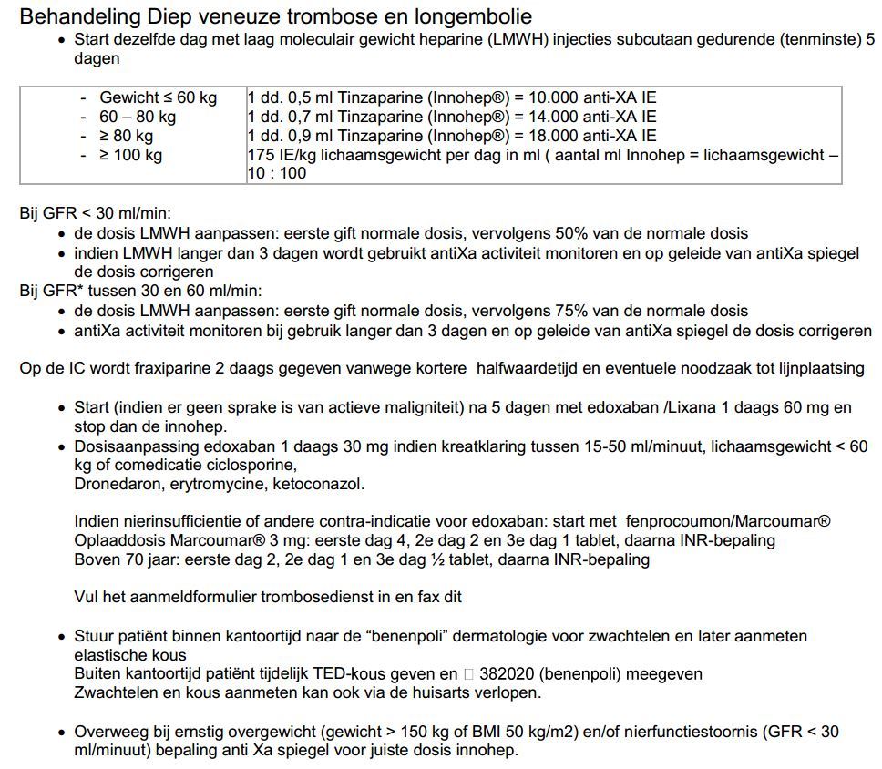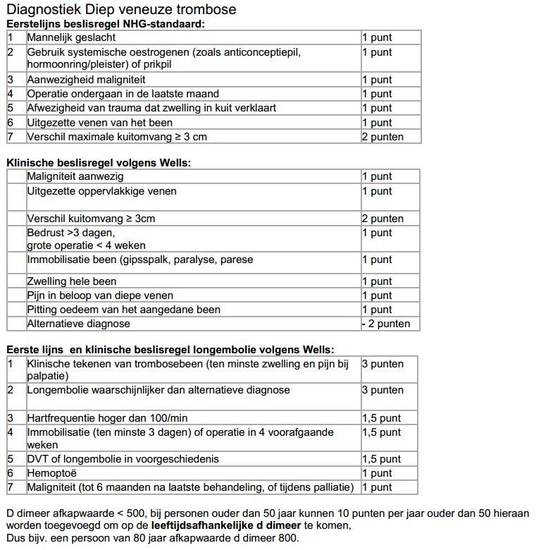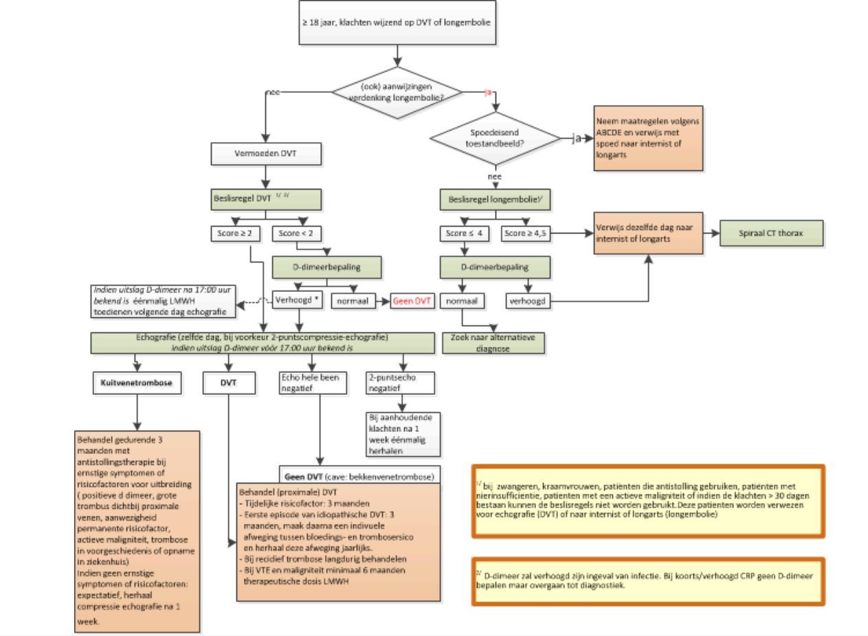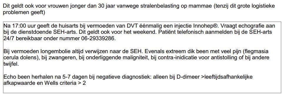 Uniforme werkwijze huisarts (huisartsenpost) en specialisten Laurentius Ziekenhuis bij patiënten met verdenking diep veneuze trombose (DVT) en longembolie.