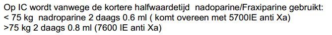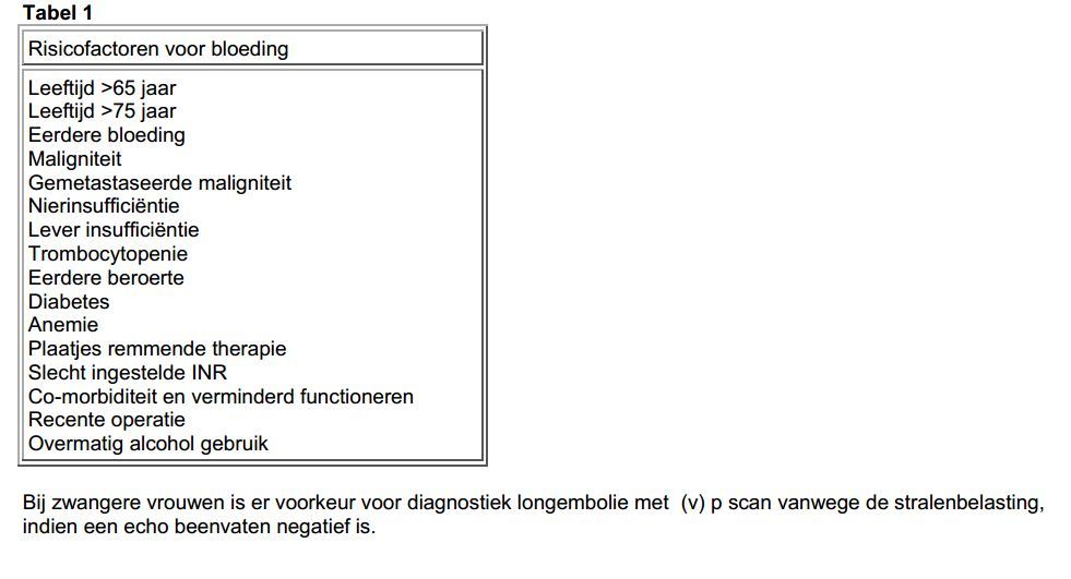 Voor verlengde behandeling van diep veneuze trombose moet het bloedingsrisico worden afgewogen aan de hand van tabel 1.
